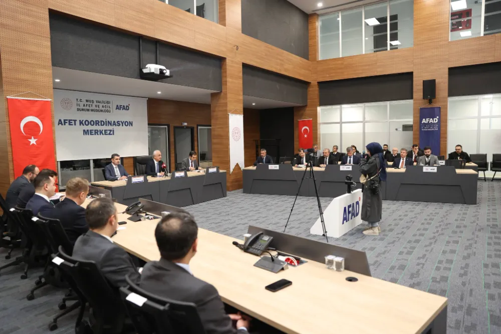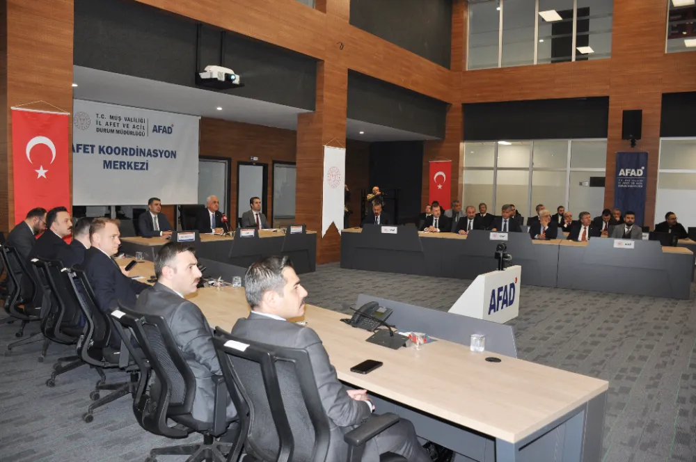 Muş’ta 2026 yılı 4. Dönem İl Koordinasyon Kurulu Toplantısı, Muş Valisi Avni Çakır başkanlığında Afet ve Acil Durum İl Müdürlüğü toplantı salonunda yapıldı. Toplantıya kamu kurum ve kuruluşlarının temsilcilerinin yanı sıra ilçe kaymakamları, bölge müdürleri, belediye başkanları ve kurum amirleri katıldı.