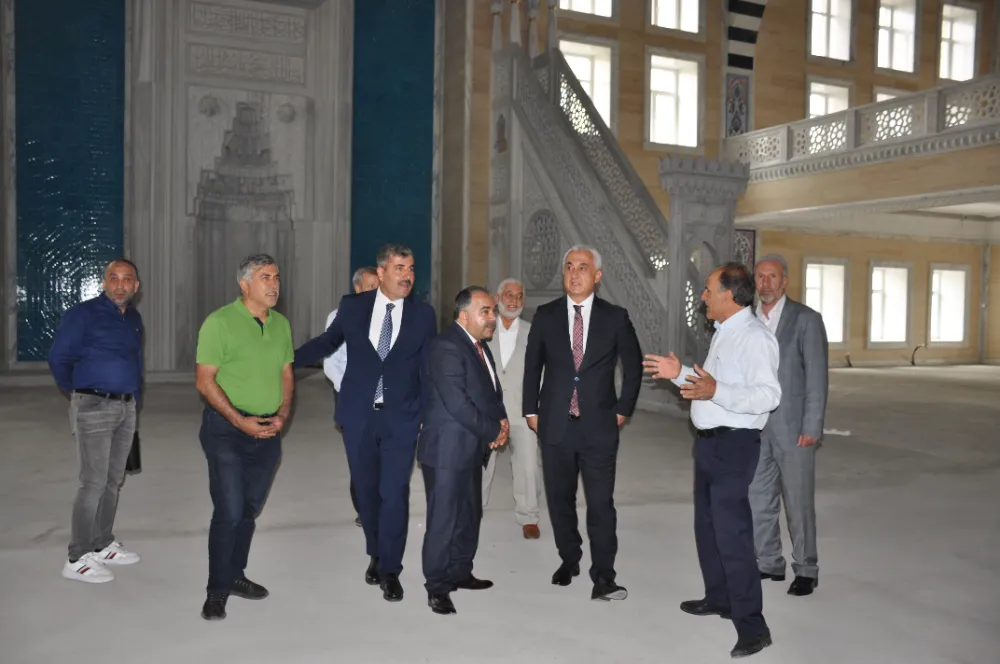 Muş Valisi Avni Çakır, Sunay Mahallesi’nde inşaatı bitme aşamasında olan İmamı Şafii Camii ve Külliyesini gezdi.