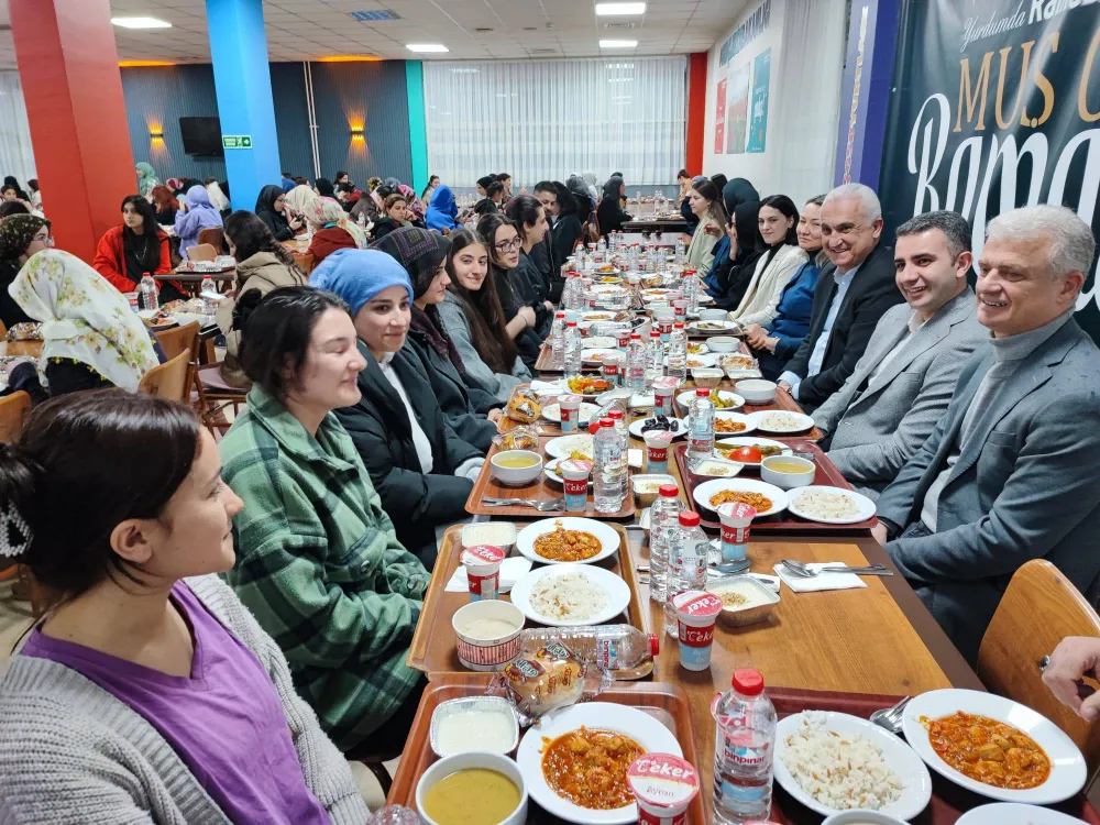 Muş Valisi Avni Çakır, Ramazan ayı kapsamında Müştak Baba Kız Öğrenci Yurdu’nda düzenlenen iftar programına katılarak öğrencilerle birlikte orucunu açtı. Programda gençlerle tek tek sohbet eden Çakır, eğitim süreçleri ve yurt imkanlarına ilişkin talepleri dinleyerek not aldı.