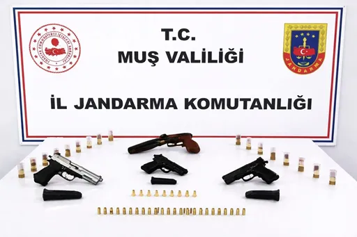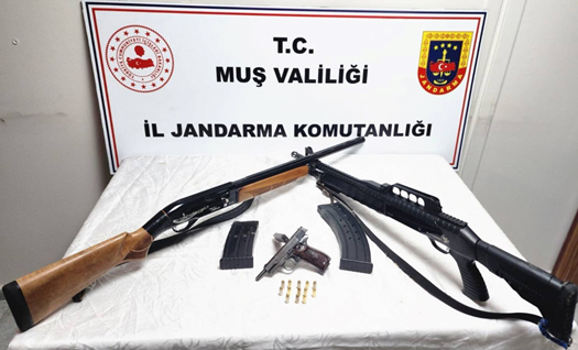 Bulanık ilçesinde de benzer kapsamda gerçekleştirilen operasyonda bir şüphelinin aracı ve ikametinde arama yapıldı. Jandarma ekiplerinin yürüttüğü çalışmalar çerçevesinde yapılan aramalarda 3 farklı marka tabanca, 3 tabanca şarjörü, 59 tabanca fişeği, 1 ruhsatsız av tüfeği ve 15 av tüfeği fişeği ele geçirildi.