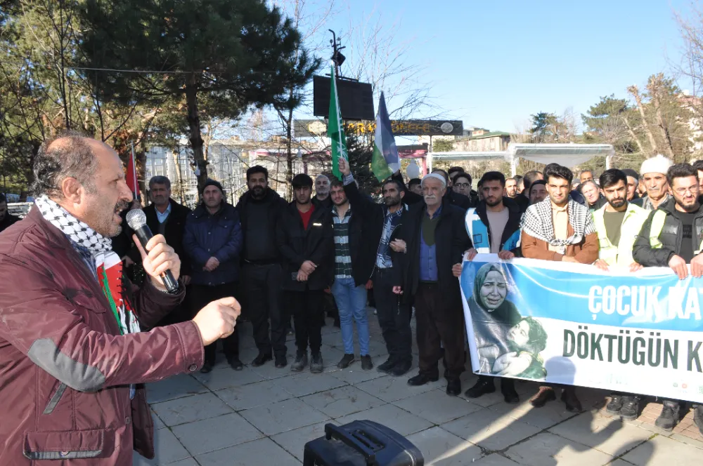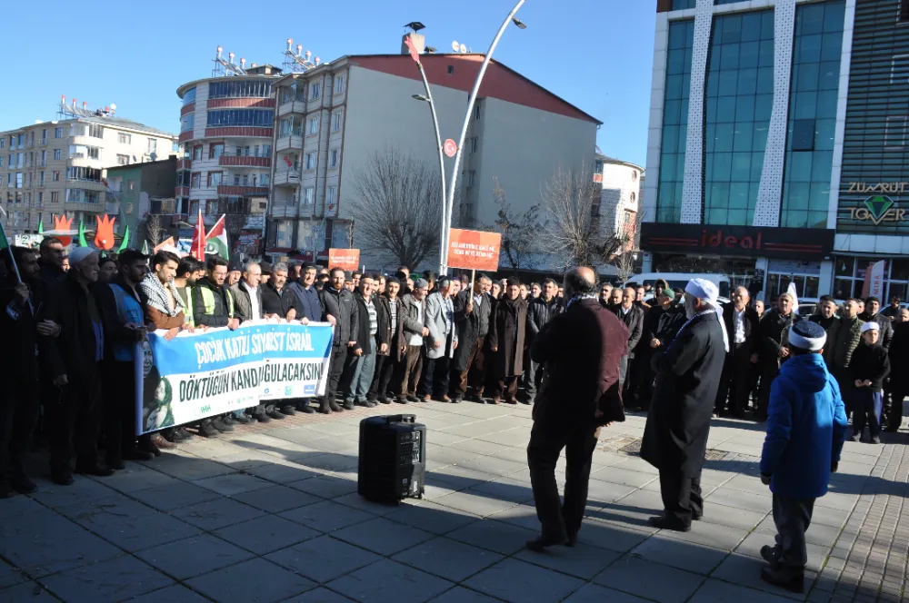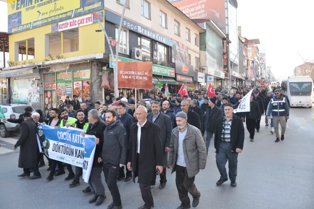 Muş’ta Cuma namazı çıkışı düzenlenen yürüyüşle İsrail’in Gazze’ye yönelik saldırıları protesto edildi.