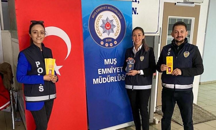 Muş Emniyet Müdürlüğünde görevli polisler, ‘Kadına Yönelik Şiddetle Uluslararası Mücadele Günü'nde vatandaşlara KADES uygulaması hakkında bilgilendirme yaptı.