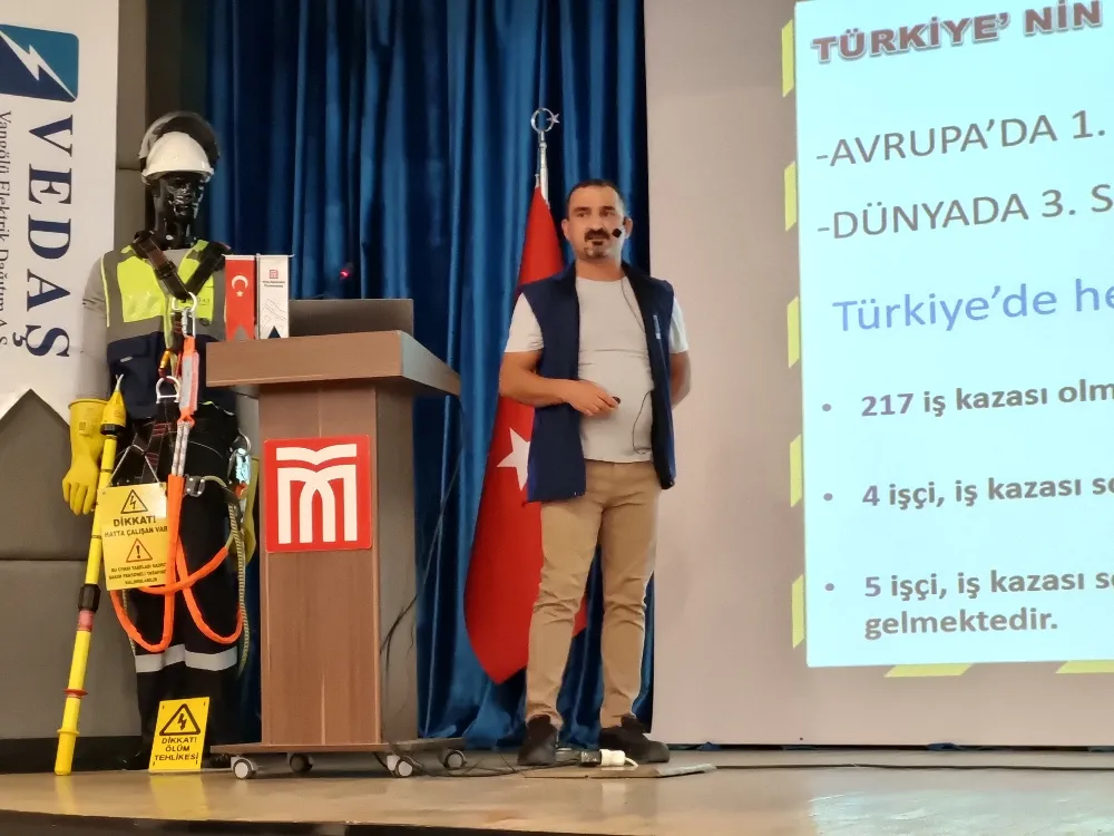 Van, Bitlis, Muş ve Hakkari illerinde elektrik dağıtım hizmeti veren Vangölü Elektrik Dağıtım A.Ş. (VEDAŞ), uzman ekipleri, ilk yardım ve iş güvenliği eğitimi çerçevesinde Muş Alparslan Üniversitesi (MAUN) öğrencileriyle buluştu. İş Güvenliği Uzmanı Salih Timur, İş Güvenliği Sorumlusu Emrah Sayılgan ve VEDAŞ İş Yeri Hekimi Dr. Hamit kasap, Teknik Bilimler Meslek Yüksekokulu öğrencilerine yönelik ilk yardım ve iş güvenliği eğitimi verdi.
