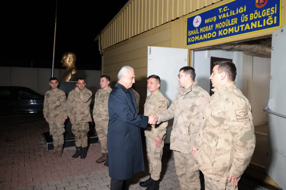 Muş-Diyarbakır yolundaki üs bölgesinde görev yapan kahraman komandoları ziyaret ettiklerini söyleyen Vali Çakır, "Jandarma ve komutanlarının üstün görev anlayışı sayesinde hem bölgemiz hem yurdumuz huzur içerisinde. İnşallah bu huzur ortamı artarak devam edecek. Güvenlik güçlerimizin üstün görevi sayesinde terör bölgeden tamamen temizlendi. Bundan sonrada en ufak bir şekilde bölgemize terörün yerleşmelerine aslanlar izin vermeyecek. Muş her zaman için bir güvenlik şehri olmuştur. Bu aziz kahramanımızın sayesinde bizler evlerimizde sıcacık yuvalarımızda huzur içerisindeyiz. Onlar üs bölgelerinde yurdun hudut boylarında milletimizin bölünmez bütünlüğü, vatandaşlarımızın huzuru noktasında gece gündüz görev yapıyorlar. Üstün görev anlatışıyla hareket ediyorlar" dedi.