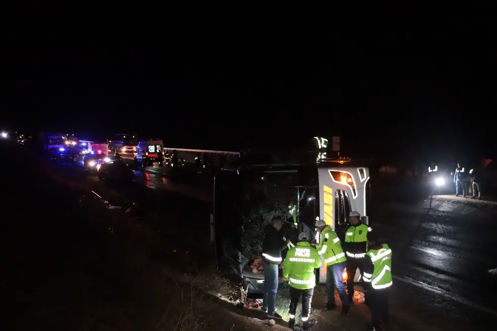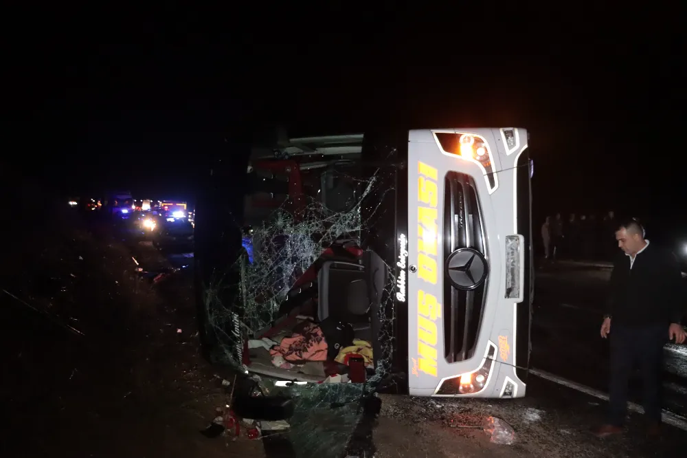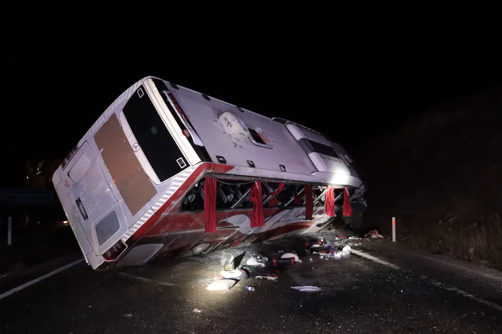YOLCU OTOBÜSÜ DEVRİLDİ: 8’İ AĞIR 38 YARALI