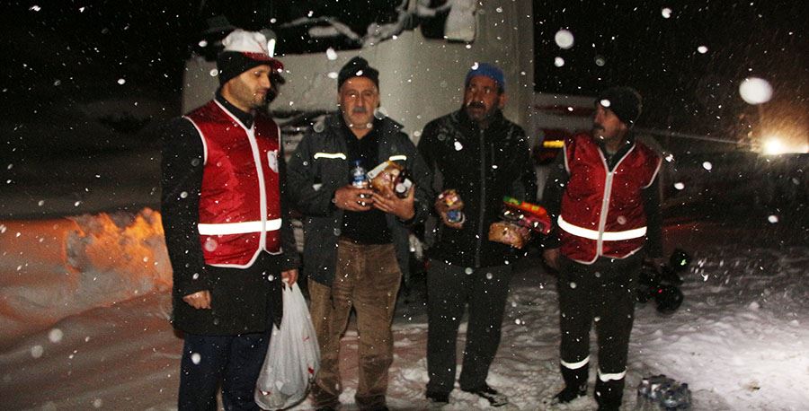 Yolda mahsur kalan sürücülerin yanında her zaman olacaklarını söyleyen Kızılay Varto Şubesi Başkanı Hamza Sezgin Yonat ise İlçe Jandarma Komutanlığımız aracılığıyla Seferek Geçidi’nde araçların ve insanların mahsur kaldığını öğrendiklerini belirterek, “Karda mahsur kalanlar için yiyecek ve su alarak bölgeye intikal ettik. Yolda tırların kaldığını gördük. Sürücülere gerekli yiyecek ve su ikramında bulunduk. Bundan sonra da yolda kalan vatandaşlarımıza Kızılay’ımızın ikramı olacaktır. Biz Kızılay olarak her zaman vatandaşlarımızın imdadına yetişmeye çalışacağız. Hiçbir zaman insanlarımızı mağdur etmeyeceğiz” ifadelerini kullandı.
