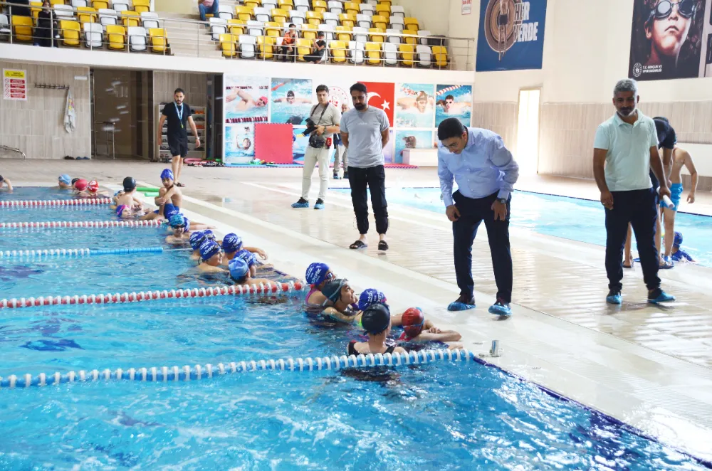 Yüzme kurslarını ziyaret eden Gençlik ve Spor İl Müdürü Mehmet Arif Taşdemir, 'Yüzme Bilmeyen Kalmasın' projesi kapsamında haftanın 6 günü gençlere yüzme öğrettiklerini ifade ederek, “7'den 70'e herkes havuzumuza gelip buradan istifade edebilir. 15 antrenörümüz, 15 cankurtaranımız eşliğinde merkez başta olmak üzere tüm ilçelerdeki portatif havuzlarımızda Yüzme Bilmeyen Kalmasın projesi kapsamında geçen yıl 15 bin 104 gencimize yüzme öğrettik. Bu sene 17 bin hedefiyle çıktığımız yolda, eğitimlerimiz devam etmekte. 3 dönem olarak yazın almış olduğumuz havuz başvurularımız 1 Ağustos itibariyle 600 gencimizi yeni eğitim dönemine alıp bu dönemi de nihayete erdirmiş olacağız. Buradaki amacımız çocuklarımız derelerde boğulmasın, hijyenik olmayan ortamlarda yüzmesin. Bunun için burada hijyenik ortamda her gün temizliği yapılan havuzumuz sağlığa elverişli şekilde gençlerimize hizmet etmekte. Haftanın 6 günü açık olmakla birlikte pazartesi günleri temizlik ve ilaçlama yapılacağından kapalı olacaktır. Yazın başlamasıyla birlikte 5 ilçemizde portatif yüzme havuzlarımız mevcut. Burada antrenörlerimiz ve cankurtaranlarımız, gençlerimize yüzmeyi öğretiyorlar. 5-17 yaş kategorisindeki yaz spor okulları ve engelsiz yaz spor okulları kapsamında gençlerimize eğitim vermekteyiz. Haftanın 3 günü erkekler, 3 günü kadınlar olmak üzere 6 gün boyunca vatandaşlarımız buraya gelip yüzmeyi öğrenebilirler” dedi.
