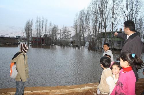 Köy muhtarı Selahattin Aydın da karların erimesinden dolayı köyün içinden geçen dere yatağının taşması sonucu köydeki 100 haneden 35`inde taşkın oluştuğunu bildirerek, "Köydeki bazı evleri tahliye ettik, bazılarında da mahsur kalan kişiler oldu" diye konuştu. Köylülerden Metin Akpolat ise yaşanan taşkın nedeniyle evinde eşi ve çocuklarıyla mahsur kaldığına değinerek, köylülerin yardımıyla evden çıktıklarını ifade etti.