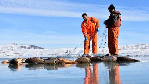 Kalınlığı 30 ile 40 santimetreyi bulan buz tabakasını motorlu testere ve kürek yardımıyla buzda delik açan balıkçılar buz gibi sulara ağlarını bırakıyorlar. Attıkları ağları bir gün sonra çeken balıkçılar, avladıkları kilolarca şehirde satıyorlar. Geçimlerini bu yolla sağlayan balıkçılar yollarının açık olması halinde göle her gün gelerek balık avladıklarını söylediler.