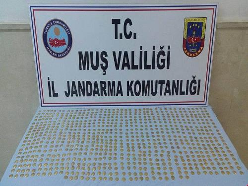 Muş`un Bulanık ilçesinde alıcı kılığına giren jandarma ekipleri, 871 adet altın sikke ele geçirdi