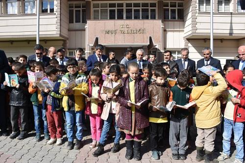 Muş Valiliği, Belediye Başkanlığı ve İl Milli Eğitim Müdürlüğü işbirliğinde Oku’MUŞ’ projesi 1. Geleneksel Okuma Günü Etkinliği yapıldı. İstasyon caddesi üzerinde yaklaşık 2 kilometre uzunluğunda sıra oluşturan 9 bin öğrenci, yaklaşık 3 saat boyunca kitap okudu. Her yıl 1 Kasım günü yapılması hedeflenen proje kapsamında, Karayolları Kavşağı`ndan Belediye Meydanı`na kadar uzanan kaldırımlarda, ilk ve ortaokul ile liseli 9 bin öğrenci aynı anda kitap okudu. Hükümet Konağı önüne gelerek öğrencilerle birlikte kitap okuyan Vali Aziz Yıldırım, kitap okuyan öğrencilerle yakından ilgilenerek kitap okumaya eşlik etti.