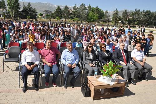 Saygı Duruşu ve İstiklal Marşı’nın okunması ile başlayan törenin açılış konuşmasını yapan Muş İl Milli Eğitim Müdürü Cevdet Arslan, tatile giren öğrencilere çeşitli tavsiyelerde bulunarak ayrıca Prof. Dr. Vahit Özmen’in bir ilkokul yaptıracağı müjdesini verdi. LYS’ye giren öğrencilere başarılar dileyen Arslan, “Mezun olanlarınız yarın LYS sınavına girecekler hepsine başarılar diliyorum. Hocamız birde buraya bir İlkokul yapacaklar kendilerine çok teşekkür ediyoruz. Ayrıca bol kazançlar diliyoruz. Ben bu mutlu günümüzde aramızda olan hocalarımıza teşekkür ediyorum” dedi.