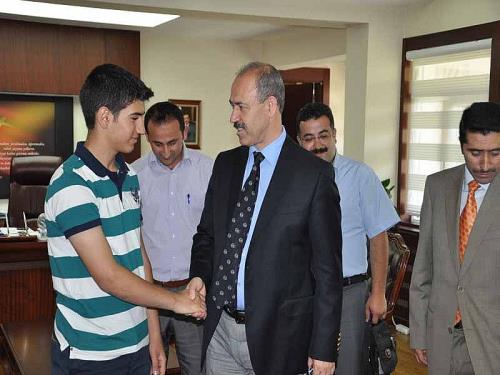 Muş Valisi Vedat Büyükersoy, Seviye Belirleme Sınavı´nda (SBS) il birincisi Yusuf Baltık´ı ve öğretmenlerini kabul etti
