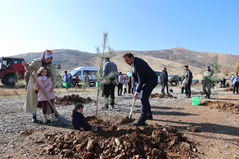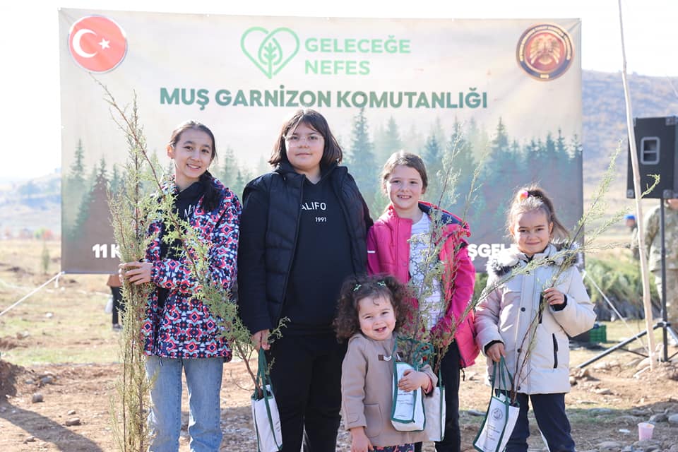 Muş Valiliği ve Orman İşletme Müdürlüğü tarafından "Geleceğe Nefes İnsanlığa Nefes" mottosuyla Muş Garnizon Komutanlığı Atış Alanı mevkiinde Mehmetçik Hatıra Ormanı'nda fidan dikimi töreni düzenlendi. Törene katılan Muş Valisi Avni Çakır, yaptığı konuşmada, 11'inci ayın 11'inde tüm ülkede bir ağaçlandırma seferberliği gerçekleştirildiğini söyledi. Eş zamanlı olarak ülkenin dört bir yanında fidanlar topraklarla buluşturulduğunu ifade eden Çakır, şunları kaydetti: "Hava şartlarından dolayı fidan dikme törenimizi ertelemiştik. Şimdi ise böylesine güzel bir kalabalıkla fidan dikme törenini icra ediyoruz. Özellikle gençlere daha çok teşekkür ediyorum. Buradaki temel amacımız, gençlerimiz ve yavrularımızla daha yeşil, daha yaşanabilir bir dünya bırakmak ve yeşili, ağacı korumanın, sevmenin, yetiştirmenin önemini vurgulamak. Onlar da burada bulunmakla beraber çok anlamlı bir törene şahitlik ediyorlar. Maksadımız da inşallah bir nevi de hasıl olacak. Bizler de hem daha yeşil bir Muş için hem daha güzel bir doğa ortamı oluşturmak için her fırsatta fidanları toprakla buluşturmaya gayret ediyoruz."