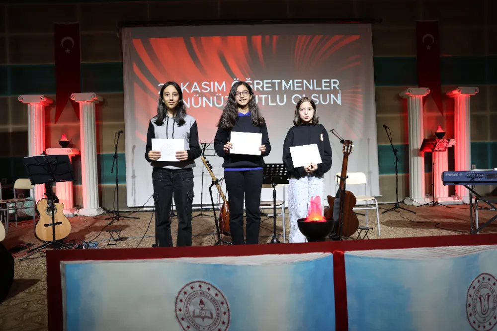 Konuşmaların ardından öğrenciler tarafından şiirler okundu, aday öğretmenler yemin etti. Öğretmenler tarafından şarkıların seslendirdiği programda, katıldıkları yarışmalarda derece giren öğrencilere ödülleri verildi.