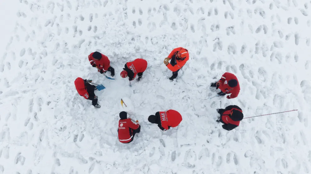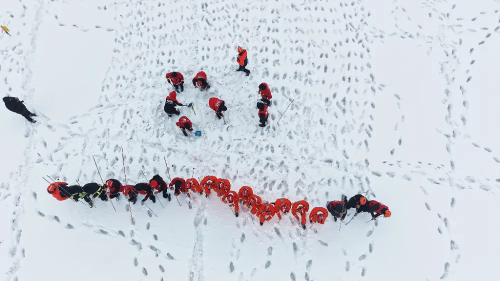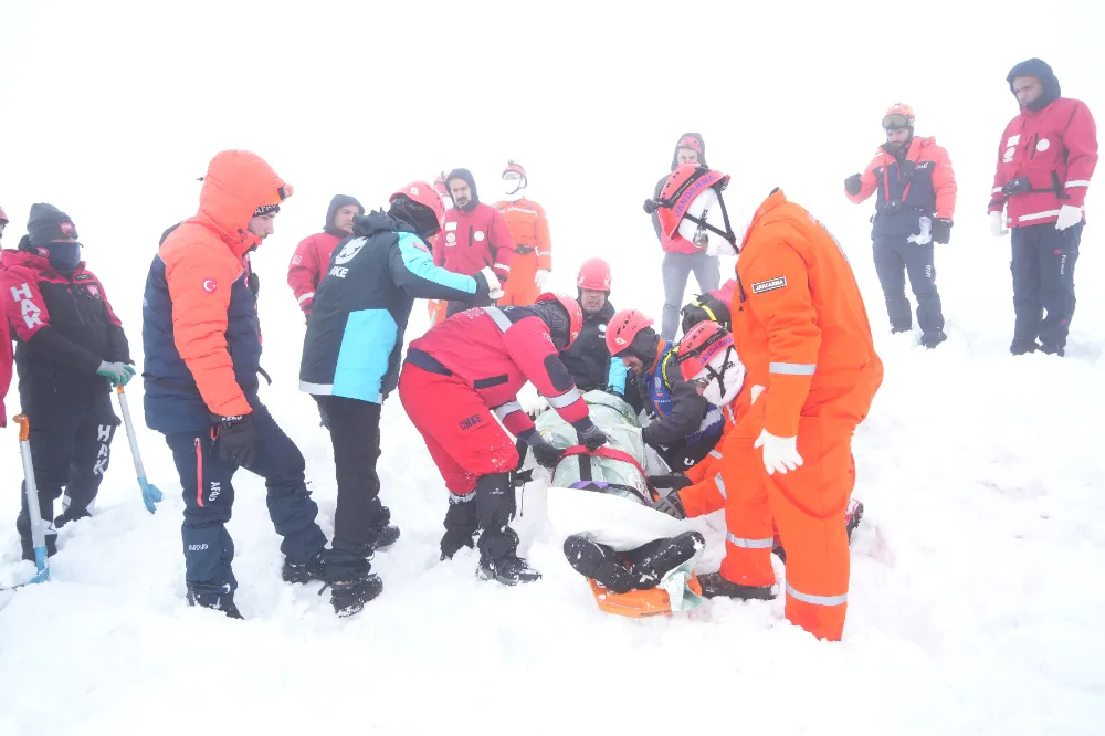 Tatbikat yalnızca çığ bölgesiyle sınırlı kalmadı. Senaryo gereği kayak merkezinde aşırı kar nedeniyle bir vadiye düşen ve mahsur kalan kayakçılar olduğu bilgisi de paylaşıldı. Bu ihbar üzerine ilgili ekipler ikinci noktaya yönlendirilerek eş zamanlı müdahale gerçekleştirildi. Böylece farklı alanlarda aynı anda kriz yönetimi pratiği yapıldı.