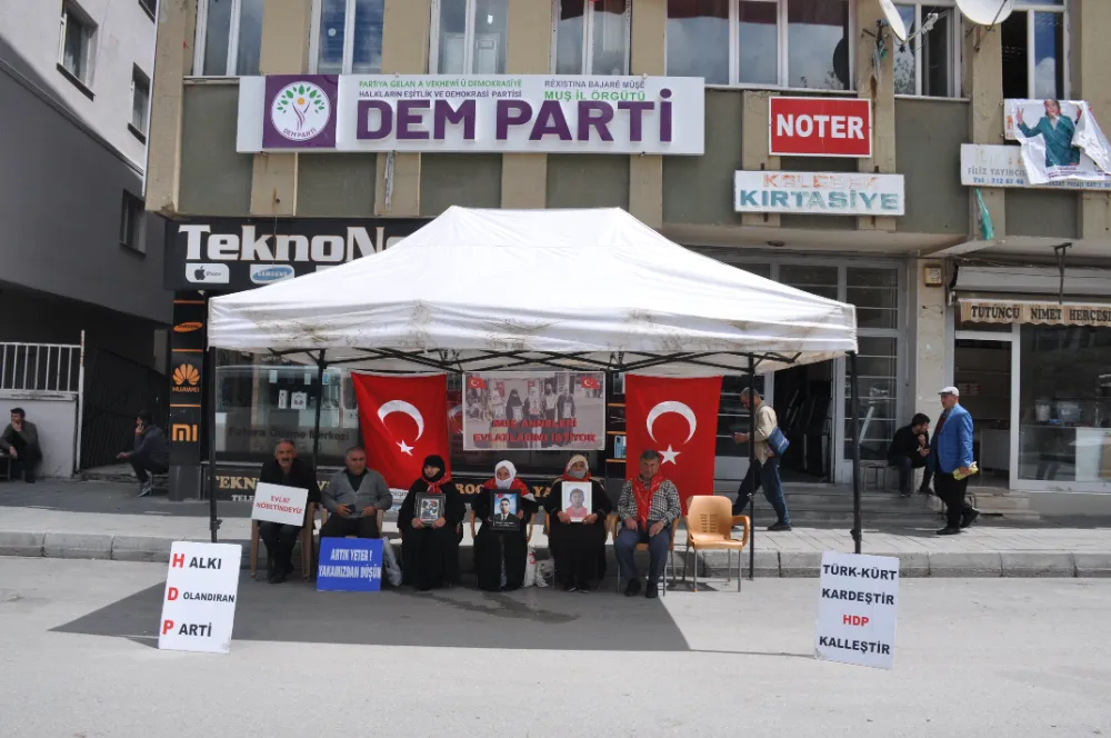 Muş’ta çocukları terör örgütü PKK tarafından kaçırılan aileler, DEM Parti il binası önündeki oturma eylemini kararlılıkla sürdürüyor.