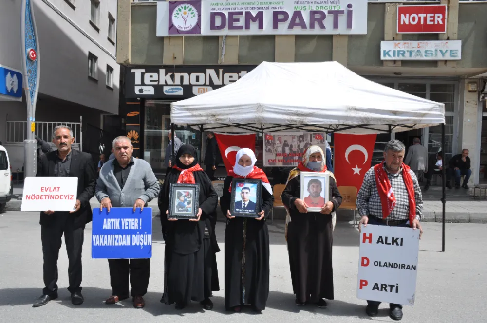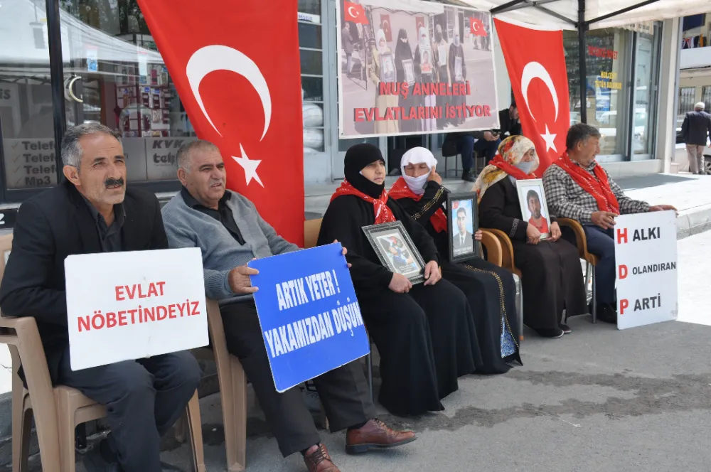 Muş’ta çocuklarını terör örgütü PKK’nın pençesinden kurtarmak isteyen ailelerin DEM Parti il binası önündeki eylemi devam ediyor. Aileler, çocuklarının en kısa sürede güvenli bir şekilde evlerine dönmesini beklerken, toplumun da bu konuda destek olmasını istedi. Çocuklarına kavuşma ümidiyle her hafta çarşamba günü DEM Parti il binası önünde bir araya gelen aileler, "Anneler direniyor" ve "Yeter artık evlatlarımızı bırakın" pankartları açtı. Anne ve babalar, yıllardır hasretle bekledikleri çocuklarına teslim olmaları için çağrıda bulundu.