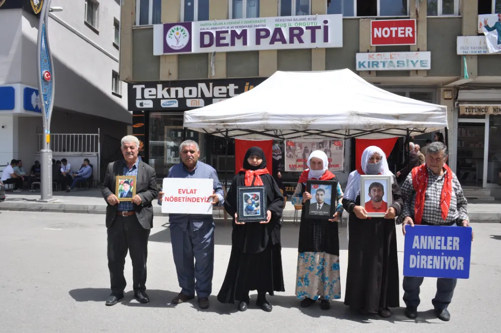 Muş’ta çocuklarını terör örgütü PKK’nın pençesinden kurtarmak isteyen ailelerin DEM Parti il binası önündeki eylemi devam ediyor. Aileler, çocuklarının en kısa sürede güvenli bir şekilde evlerine dönmesini beklerken, toplumun da bu konuda destek olmasını istedi. Çocuklarına kavuşma ümidiyle her hafta çarşamba günü DEM Parti il binası önünde bir araya gelen aileler, "Anneler direniyor" ve "Yeter artık evlatlarımızı bırakın" pankartları açtı. Anne ve babalar, yıllardır hasretle bekledikleri çocuklarına teslim olmaları için çağrıda bulundu.