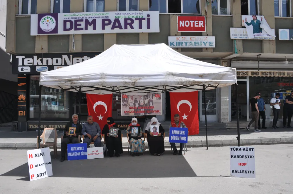 Muş’ta çocukları terör örgütü PKK tarafından kaçırılan aileler, DEM Parti il binası önündeki oturma eylemini kararlılıkla sürdürüyor.