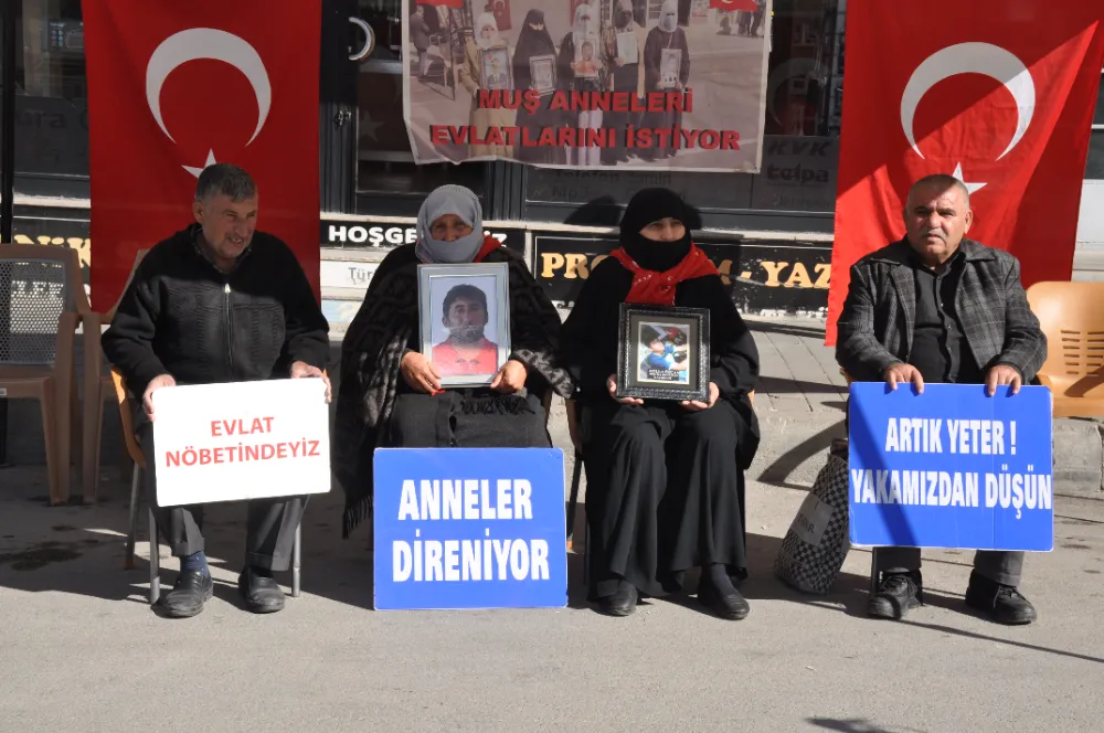 Muş’ta çocuklarını terör örgütü PKK’nın pençesinden kurtarmak isteyen ailelerin DEM Parti il binası önündeki eylemi devam ediyor. Aileler, çocuklarının en kısa sürede güvenli bir şekilde evlerine dönmesini beklerken, toplumun da bu konuda destek olmasını istedi. Çocuklarına kavuşma ümidiyle her hafta çarşamba günü DEM Parti il binası önünde bir araya gelen aileler, "Anneler direniyor" ve "Yeter artık evlatlarımızı bırakın" pankartları açtı. Anne ve babalar, yıllardır hasretle bekledikleri çocuklarına teslim olmaları için çağrıda bulundu.