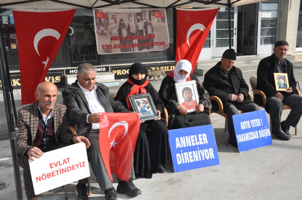 Muş’ta çocuklarını terör örgütü PKK’nın pençesinden kurtarmak isteyen ailelerin DEM Parti il binası önündeki eylemi devam ediyor. Aileler, çocuklarının en kısa sürede güvenli bir şekilde evlerine dönmesini beklerken, toplumun da bu konuda destek olmasını istedi. Çocuklarına kavuşma ümidiyle her hafta çarşamba günü DEM Parti il binası önünde bir araya gelen aileler, "Anneler direniyor" ve "Yeter artık evlatlarımızı bırakın" pankartları açtı. Anne ve babalar, yıllardır hasretle bekledikleri çocuklarına teslim olmaları için çağrıda bulundu.