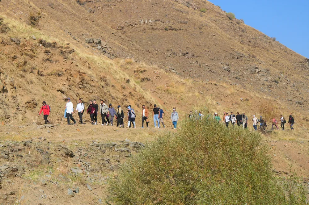 İçişleri Bakanlığı desteğiyle yürütülen "Adımlarla Keşfet" projesi kapsamında farklı meslek gruplarından 40 kişi, Muş'un ünlü bağlarına doğa yürüyüşü gerçekleştirdi.