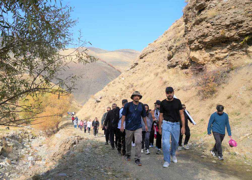 Muş’ta 40 kişilik grup, İçişleri Bakanlığı desteğiyle yürütülen “Adımlarla Keşfet” projesi kapsamında kentin ünlü bağlarını keşfe çıktı; doğa ve kültürel miras adım adım tanıtıldı.