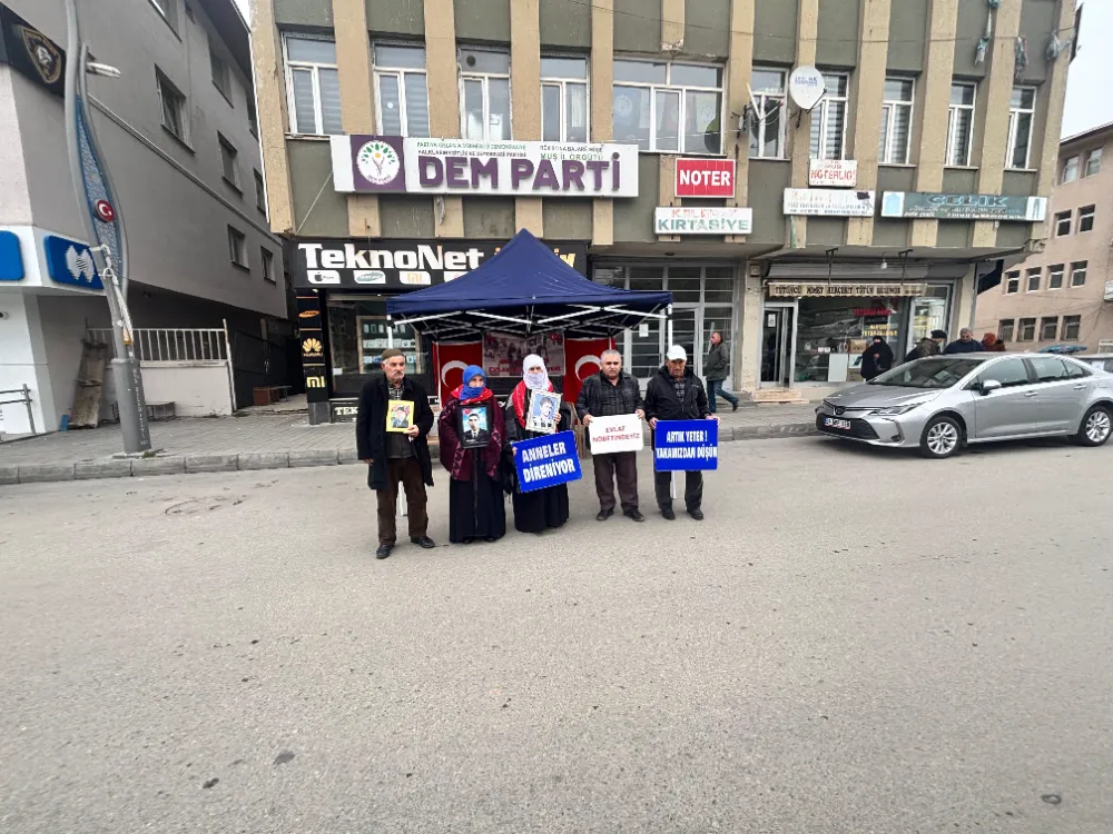 Muş’ta çocuklarının PKK tarafından kaçırıldığını iddia eden ailelerin DEM Parti İl Başkanlığı binası önündeki evlat nöbeti sürüyor.