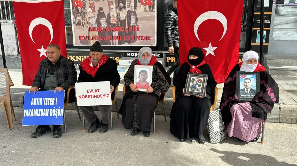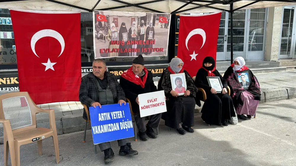 Muş’ta çocuklarını terör örgütü PKK’nın pençesinden kurtarmak isteyen ailelerin DEM Parti il binası önündeki eylemi devam ediyor. Aileler, çocuklarının en kısa sürede güvenli bir şekilde evlerine dönmesini beklerken, toplumun da bu konuda destek olmasını istedi. Çocuklarına kavuşmak ümidiyle her hafta çarşamba günü DEM Parti il binası önünde bir araya gelen aileler, "Anneler direniyor" ve "Yeter artık evlatlarımızı bırakın" pankartları açtı.