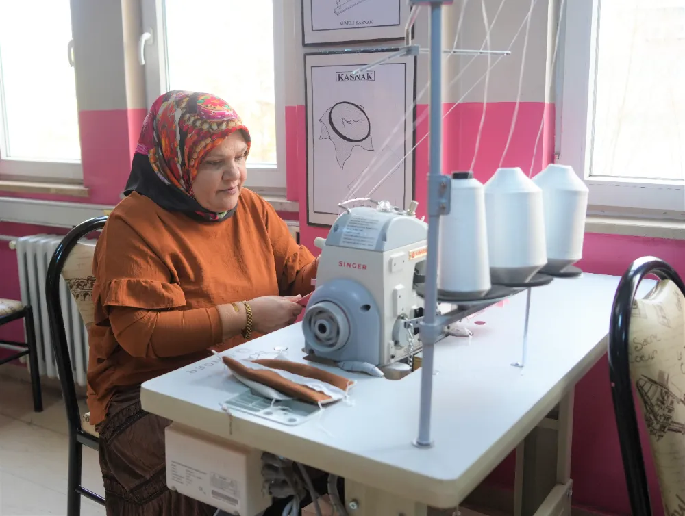 Halk Eğitim Merkezinde verilen el sanatları teknoloji kursuna katılan kadınlar, eğitimlerde kullanılan kumaşlardan arta kalan atıkları değerlendirmek amacıyla kalemlikler üretiyor. Gönüllü olarak yürüttükleri sosyal sorumluluk çalışması kapsamında hazırladıkları kalemlikleri köy okulundaki öğrencilere hediye eden kursiyerler, çocuklara sürpriz yapmak için kalemliklerin içine küçük hediyeler de yerleştiriyor. Kursiyer kadınlar, hem atık malzemeleri geri dönüştürerek ekonomiye katkı sağlamayı hem de çocukların yüzünü güldürmeyi amaçlıyorlar.