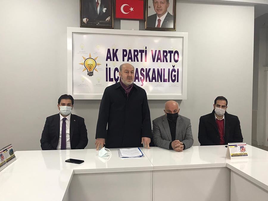 AK Parti Muş İl Başkanı Varto İlçe başkanlığına yapmış olduğu ziyarette bir konuşma yaparak Cumhurbaşkanı tarafından bu göreve atanmasının teşkilat içinde iyi karşılandığını belirterek; “öncelikle Sayın Cumhurbaşkanımızla görüşmemizde Sultan Alparslan diyarı memleketimize selam gönderdiğini belirtmek isterim. Bunun dışında biz ziyaretlerimize tarihi ilçemiz Malazgirt’ten başlayıp Bulanık, Varto, Hasköy ve Korkut ilçelerimizde devam ediyoruz. Bu göreve seçilmemde beni en çok sevindiren konulardan biri uzun yıllardır bu teşkilatın içindeyim. Bundan öncede yine uzun yıllar siyasi geçmişim var. Cumhurbaşkanımızın bu görevi bana vermesi teşkilat içindeki arkadaşlarımız tarafından iyi karşılandı. Biz buraya oturmaya gelmedik inşallah sürekli olarak sahada çalışmalarımıza devam edeceğiz" dedi.