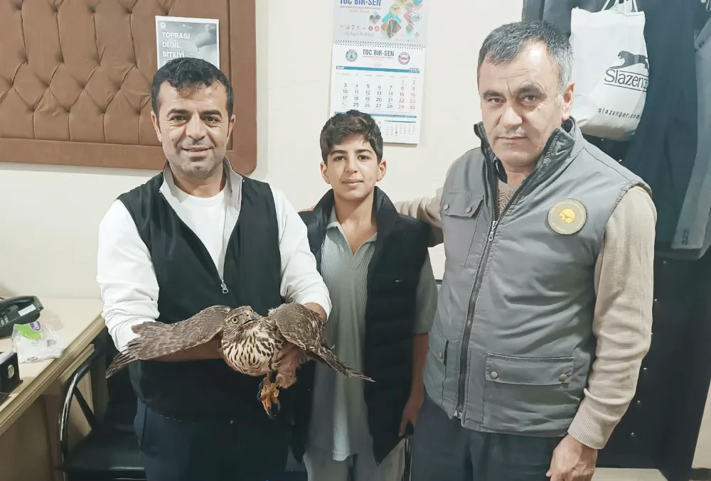 Doğada yaralı halde bulunan bir şahinin yaşam mücadelesi, örnek bir duyarlılıkla umutla devam ediyor. Muş’ta doğada yaralı bir şahin bulan Cevher Akpolat ve oğlu Berbang Cevher, vakit kaybetmeden kuşu Doğa Koruma ve Milli Parklar (DKMP) Muş Şube Müdürlüğü’ne teslim etti.