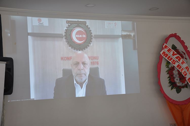 Hizmet-İş Sendikası Genel Başkanı Mahmut Arslan, Muş Şube Başkanlığının 6. Olağan Genel Kuruluna video konferans yöntemi ile katılarak üyelere seslendi.