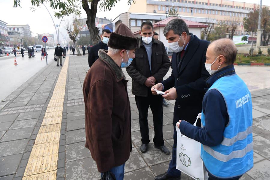 Muş Belediyesi koronavirüs tedbirleri kapsamında çalışmalarını aralıksız sürdürürken Belediye Başkanı Feyat Asya da bizzat vatandaşlara maske dağıtarak uyarılarda bulundu.