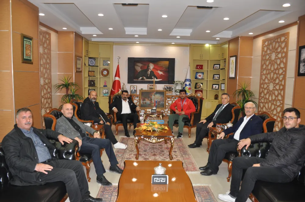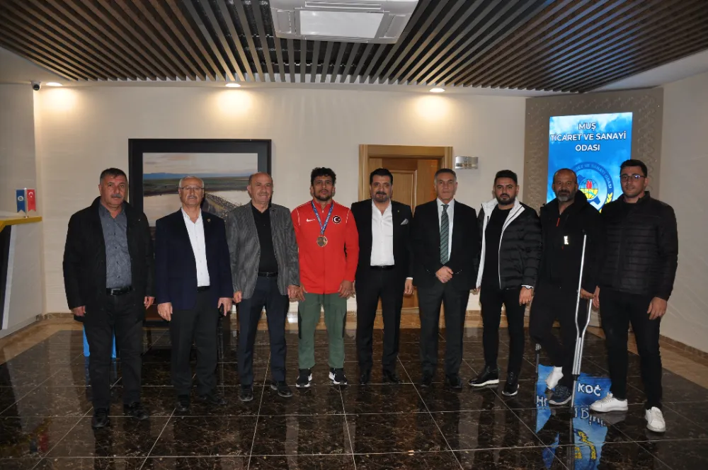 Muş Ticaret ve Sanayi Odası (MUŞ TSO) Başkanı Erdal Koç, Arnavutluk’un başkenti Tiran’da düzenlenen Dünya Güreş Şampiyonası’nda grekoromen stil 82 kiloda dünya üçüncüsü olan Muşlu milli güreşçi Ahmet Yılmaz’ı makamında ağırlayarak tebrik etti.