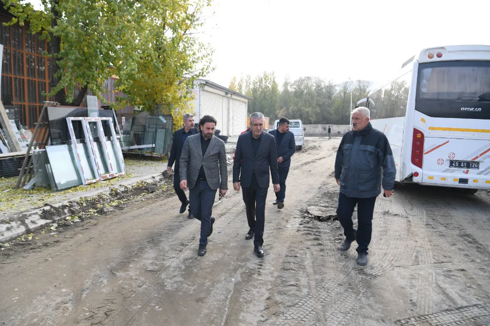 Muş Belediye Başkanı Sırrı Söylemez, Sanayi Sitesi’nde süren altyapı ve üstyapı çalışmalarını sahada inceleyerek hem ekiplerden bilgi aldı hem de esnafın taleplerini dinledi.
