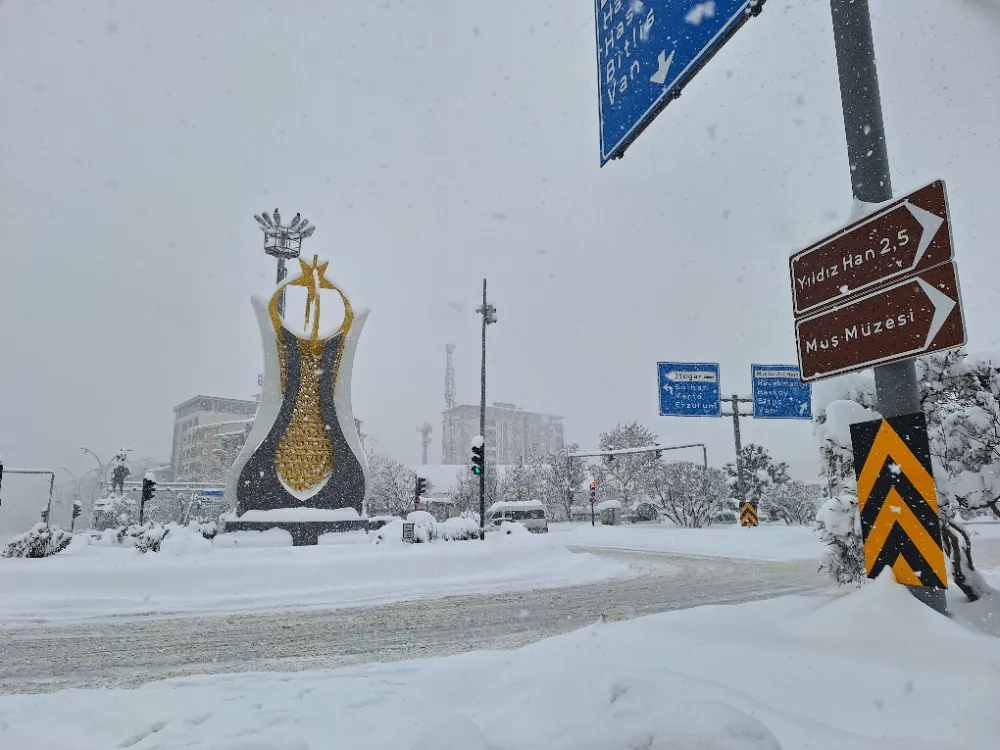 Muş’ta etkisini artıran yoğun kar yağışı, kent genelinde günlük yaşamı adeta felç etti.