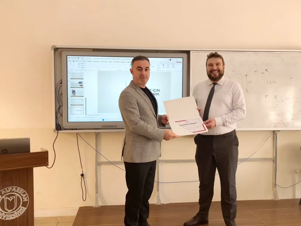 Etkinlik, Dr. Öğr. Üyesi Fatih Şevgin tarafından Muhammet Bilal Kayacıoğlu’na teşekkür belgesi takdim edilmesinin ardından sona erdi.
