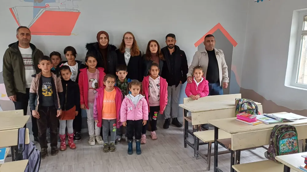 Malazgirt’te sağlık çalışanları tek derslikli köy okulunun duvarlarını boyayıp, tadilat yaptı, öğrencilere kitap ve kırtasiye malzemesi dağıttı