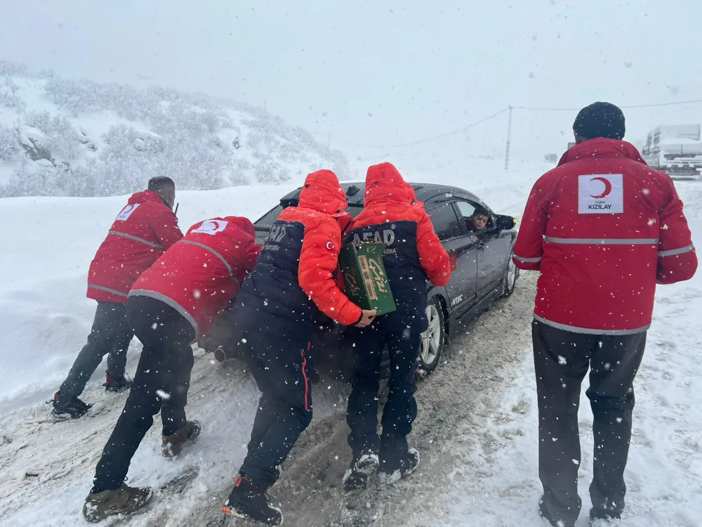 Ekipler, yalnızca beslenme desteğiyle sınırlı kalmayarak, kar nedeniyle yolda kalan bazı araçların bulunduğu noktadan çıkarılması için de çalışma yürüttü. Yoğun kar yağışına ve olumsuz hava şartlarına rağmen koordineli şekilde hareket eden ekipler, vatandaşların güvenli alanlara ulaşmasını sağladı.