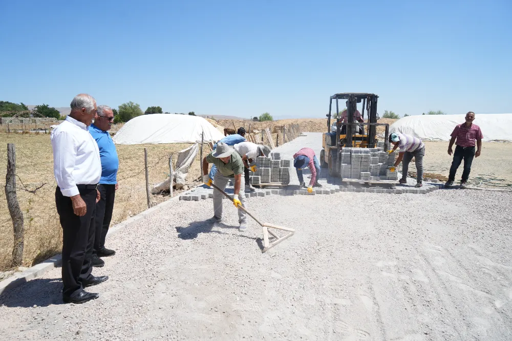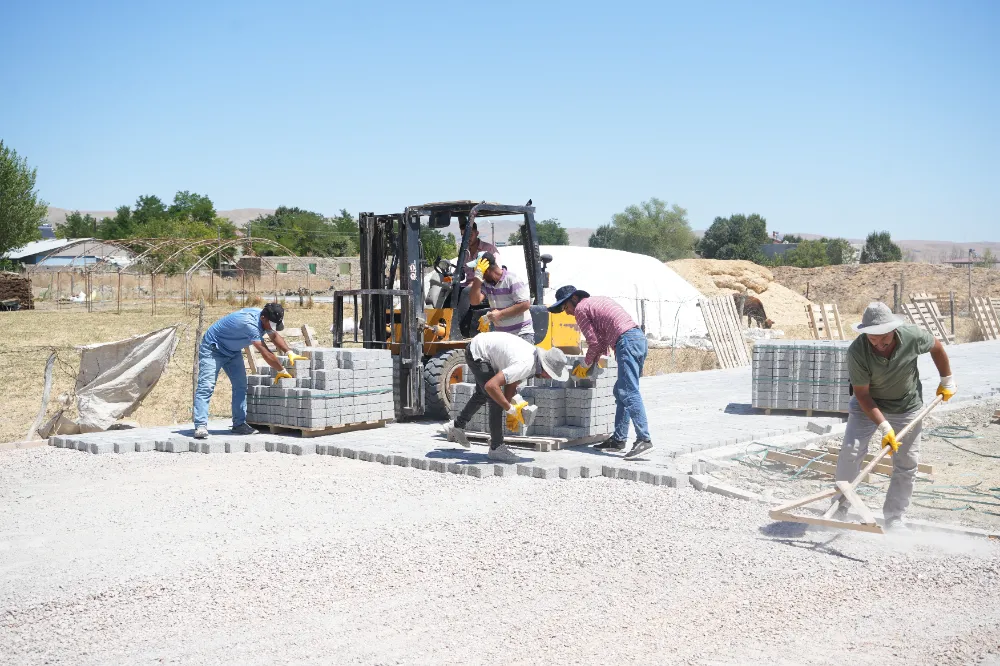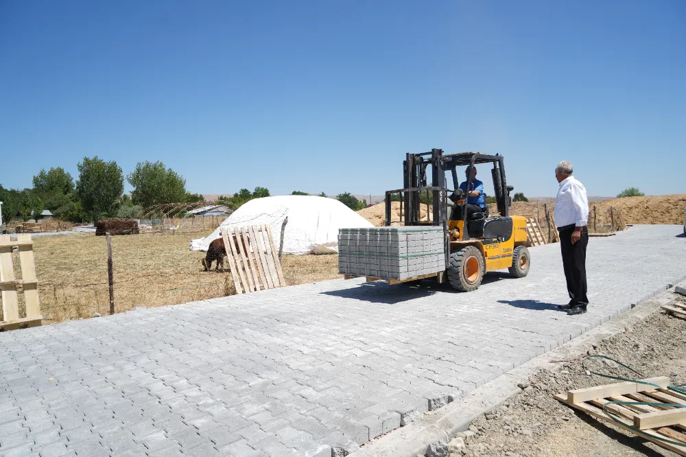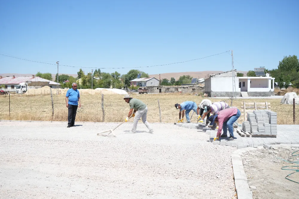 Muş’un Kırköy Belediyesi tarafından başlatılan yol yapım çalışmaları çerçevesinde mahalle yollarına kilitli parke taşı döşendi.