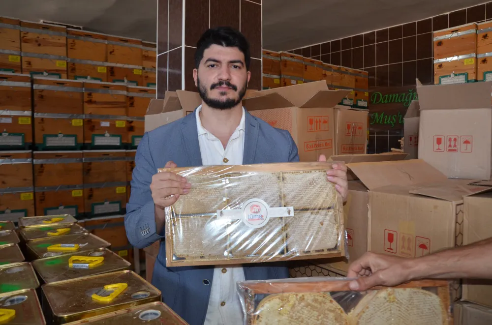 Muş'un Korkut ilçesinde 9 yıldır arıcılık yapan Mirza Pekbay, elde ettiği 60 ton baldan 50 tonuna yurtdışına ihraç ediyor.