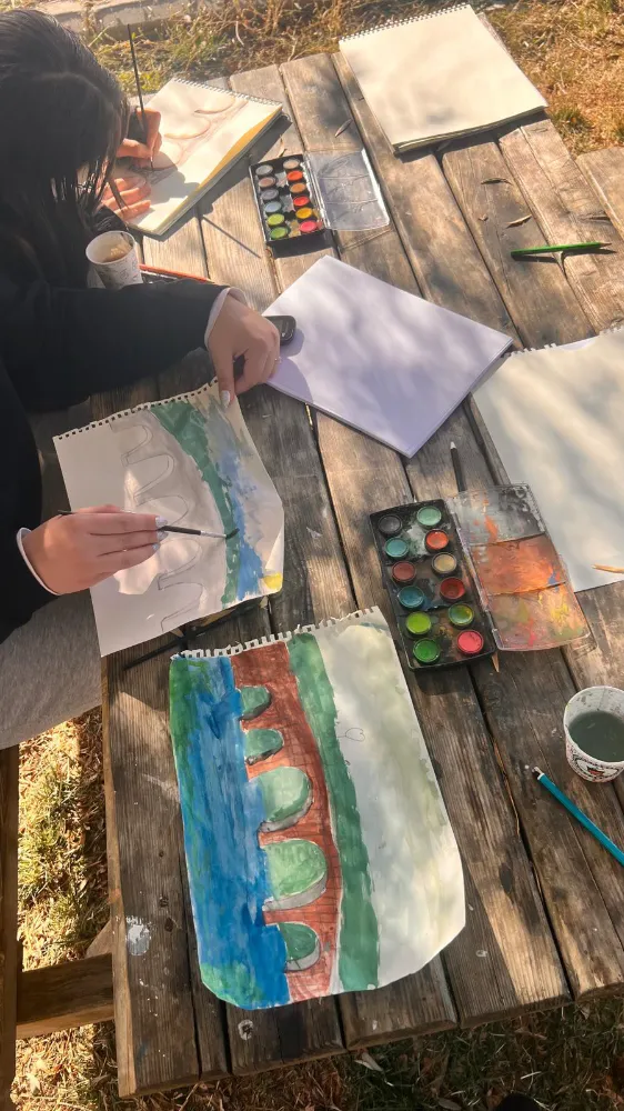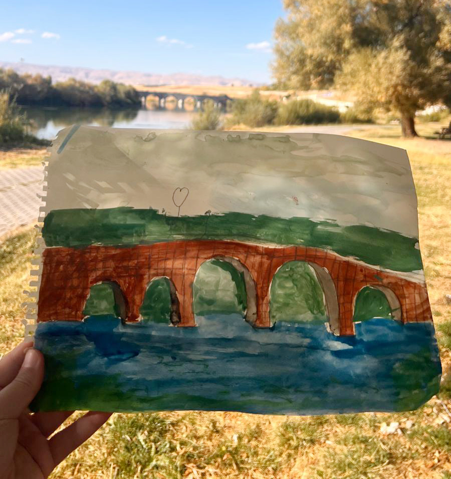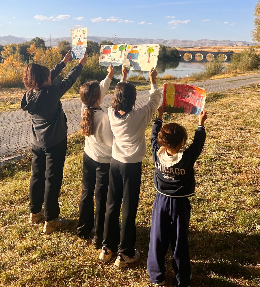 Tarihi Murat Köprüsü’nün eşsiz manzarasında yapılan etkinlikte çocuklar, çevrelerinde gördükleri doğa ve tarihi dokuyu resim kağıtlarına aktardı. Minik eller, köprünün tarihi taş dokusunu ve çevredeki doğal güzellikleri kendi perspektiflerinden yorumlayarak farklı eserler ortaya koydu.