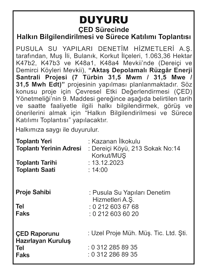 ÇED Sürecinde Halkın Bilgilendirilmesi ve Sürece Katılımı Toplantısı
