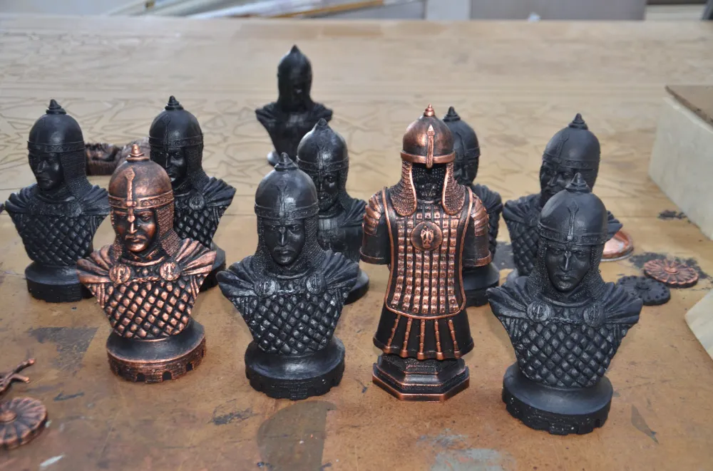 Üretim sürecinin araştırma aşamasıyla başladığını aktaran Şahin, tarihi ve kültürel unsurların incelenmesinin ardından tasarımın modelleme macunlarıyla elle şekillendirildiğini ifade etti. Figüratif, soyut ve geleneksel motiflerin bir arada değerlendirilerek özgün kompozisyonlar oluşturulduğunu dile getiren Şahin, kalıp aşamasından sonra alçı, beton, reçine veya metal bazlı malzemelerle çoğaltma işlemlerinin yapıldığını belirtti. Döküm sonrası yüzey temizliği, zımparalama ve son olarak patine ya da eskitme uygulamalarıyla eserlerin kullanıma hazır hale getirildiğini kaydetti.