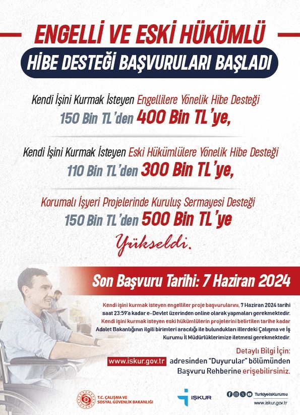 ENGELLİ VE ESKİ HÜKÜMLÜ HİBE DESTEĞİ BAŞVURULARI BAŞLADI