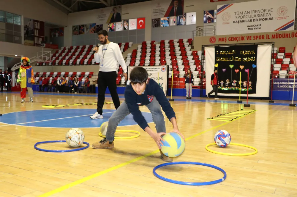 Muş’ta 3 Aralık Dünya Engelliler Günü kapsamında düzenlenen programda, özel gereksinimli bireyler için sportif ve sanatsal etkinlikler gerçekleştirildi. Etkinlikler, sevgi, paylaşım ve farkındalık mesajlarıyla renklendi.