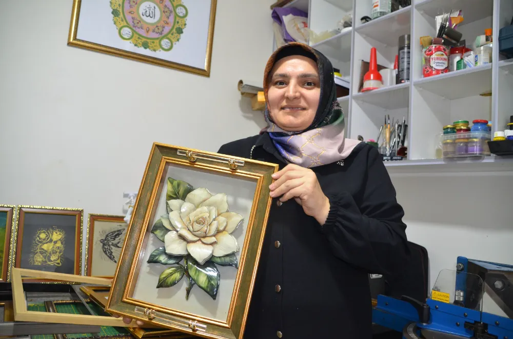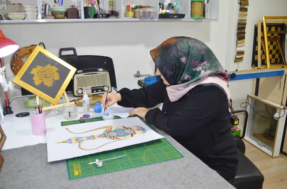 Muş’ta yaşayan Ayşe Polat, evinin bir odasını el sanatları atölyesine dönüştürerek geleneksel Türk el sanatlarını modern dokunuşlarla yaşatıyor; sipariş üzerine ürettiği eserlerle hem sanata katkı sunuyor hem de aile bütçesine ek gelir sağlıyor.