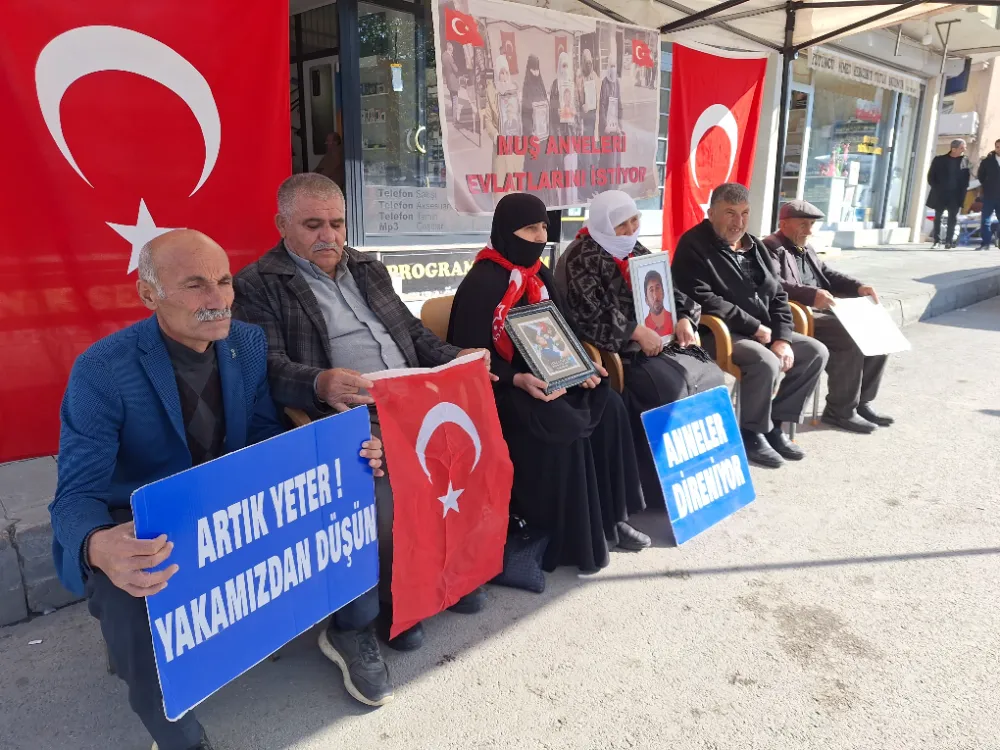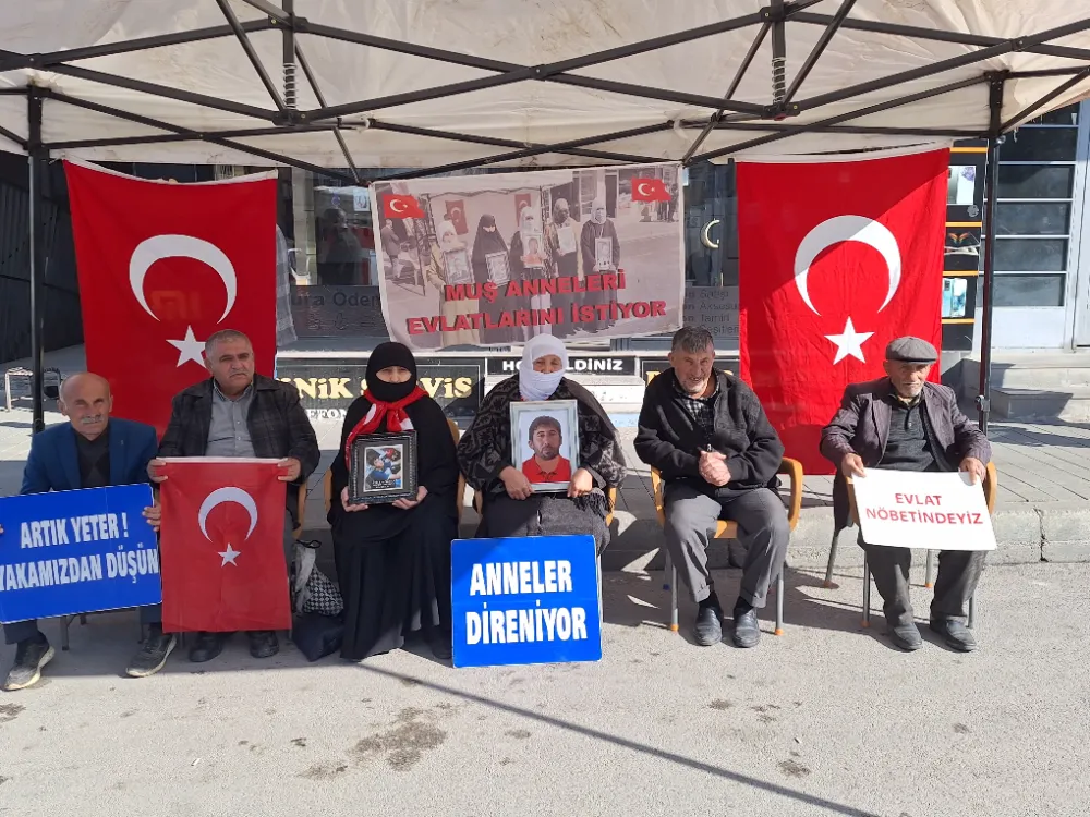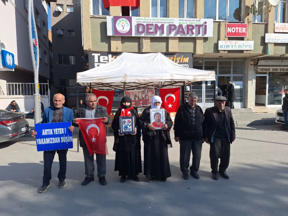 Muş’ta çocukları terör örgütü PKK tarafından kaçırılan aileler, DEM Parti il binası önündeki oturma eylemini kararlılıkla sürdürüyor.